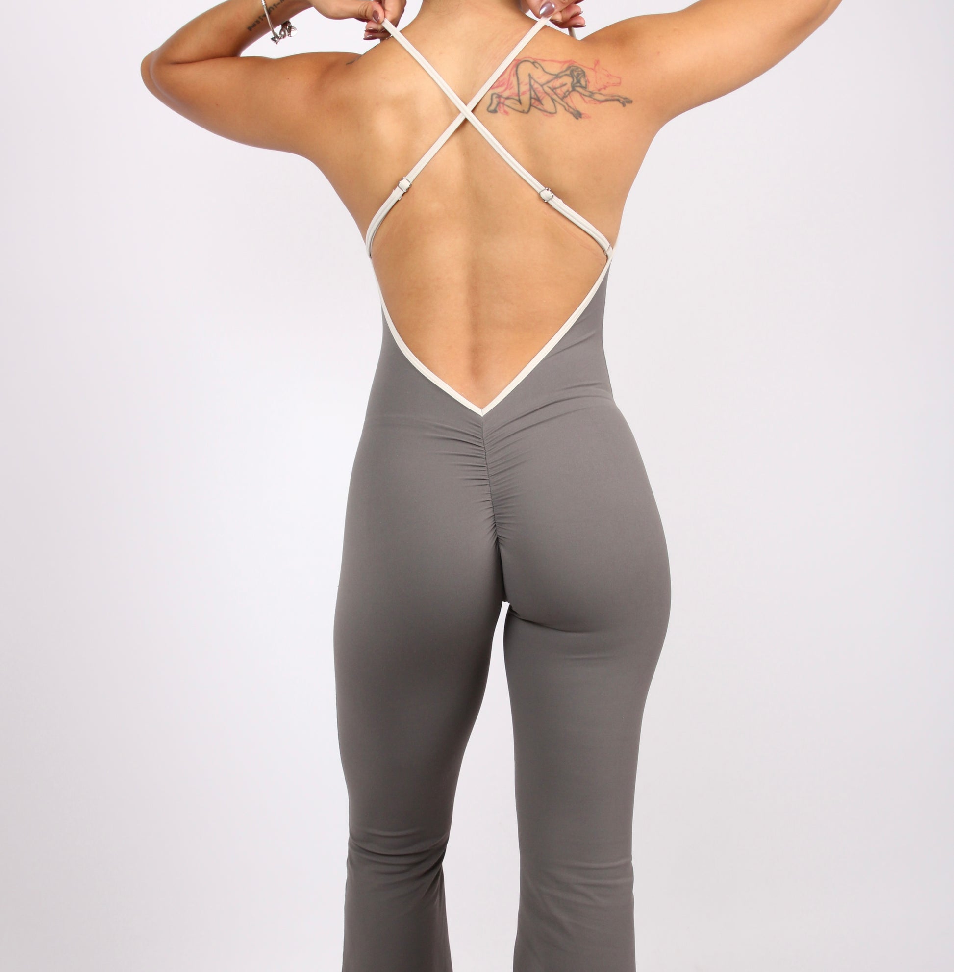 Details: Adjustable cross-back straps for a secure fit, a deep open back that flatters, and a seamless scrunch detail that naturally enhances your shape. The flare-leg finish elongates your frame, adding elegance to function.